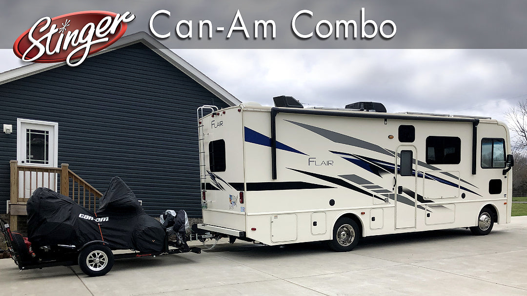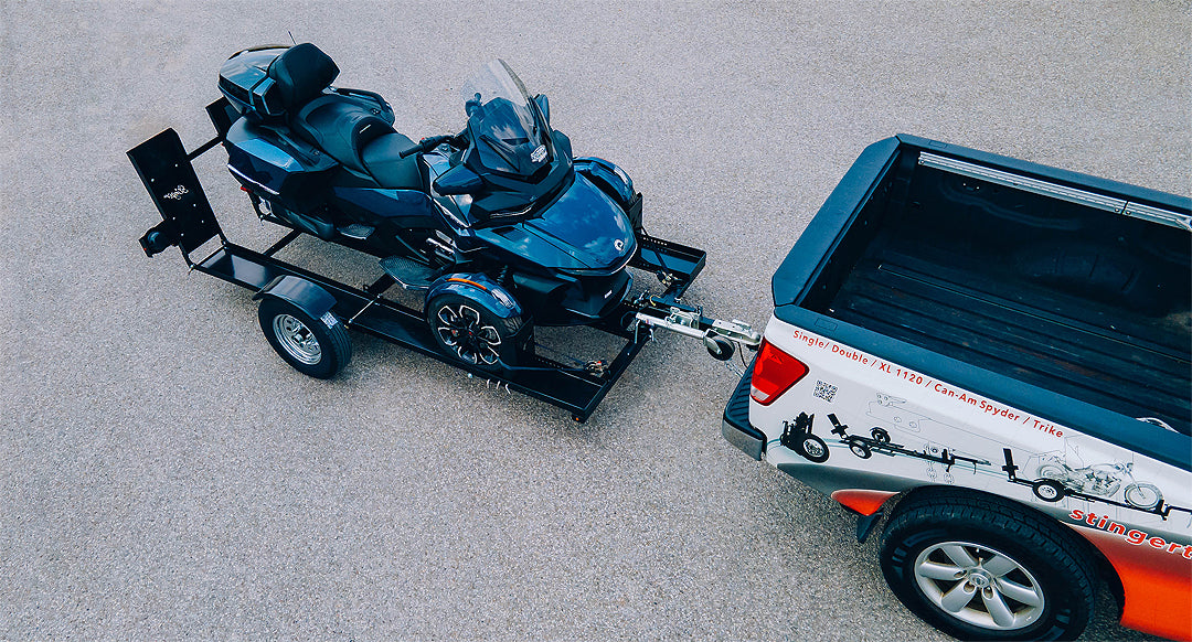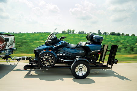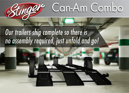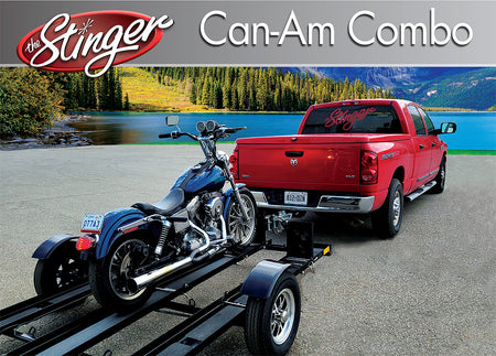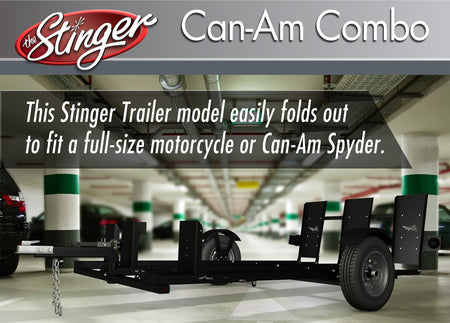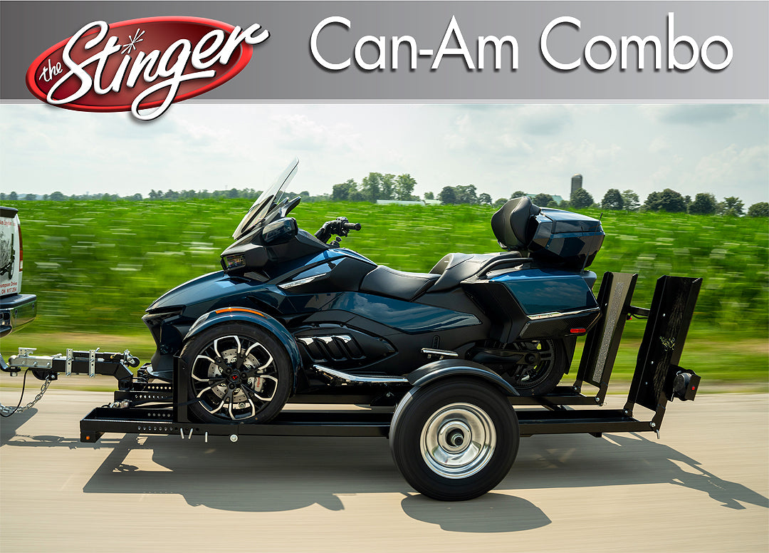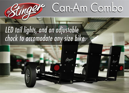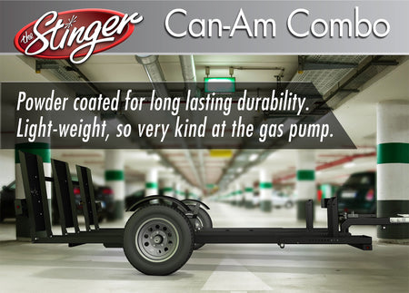 The Stinger Can-Am Combo effortlessly hauls a Can-Am or a full-size motorcycle. With 114.5” of usable bed length and a 66 ¾“ wide tailgate, you have plenty of space to load your motorcycle of choice. The radial tires work with your bikes suspension to ensure a smooth, safe ride. All Stinger Motorcycle Trailers are powder coated to ensure a long-lasting finish, feature LED tail lights, and an adjustable chock to suit your motorcycle.