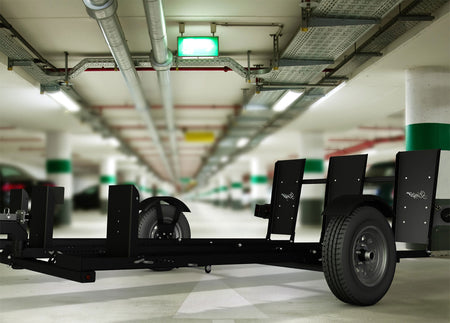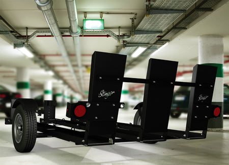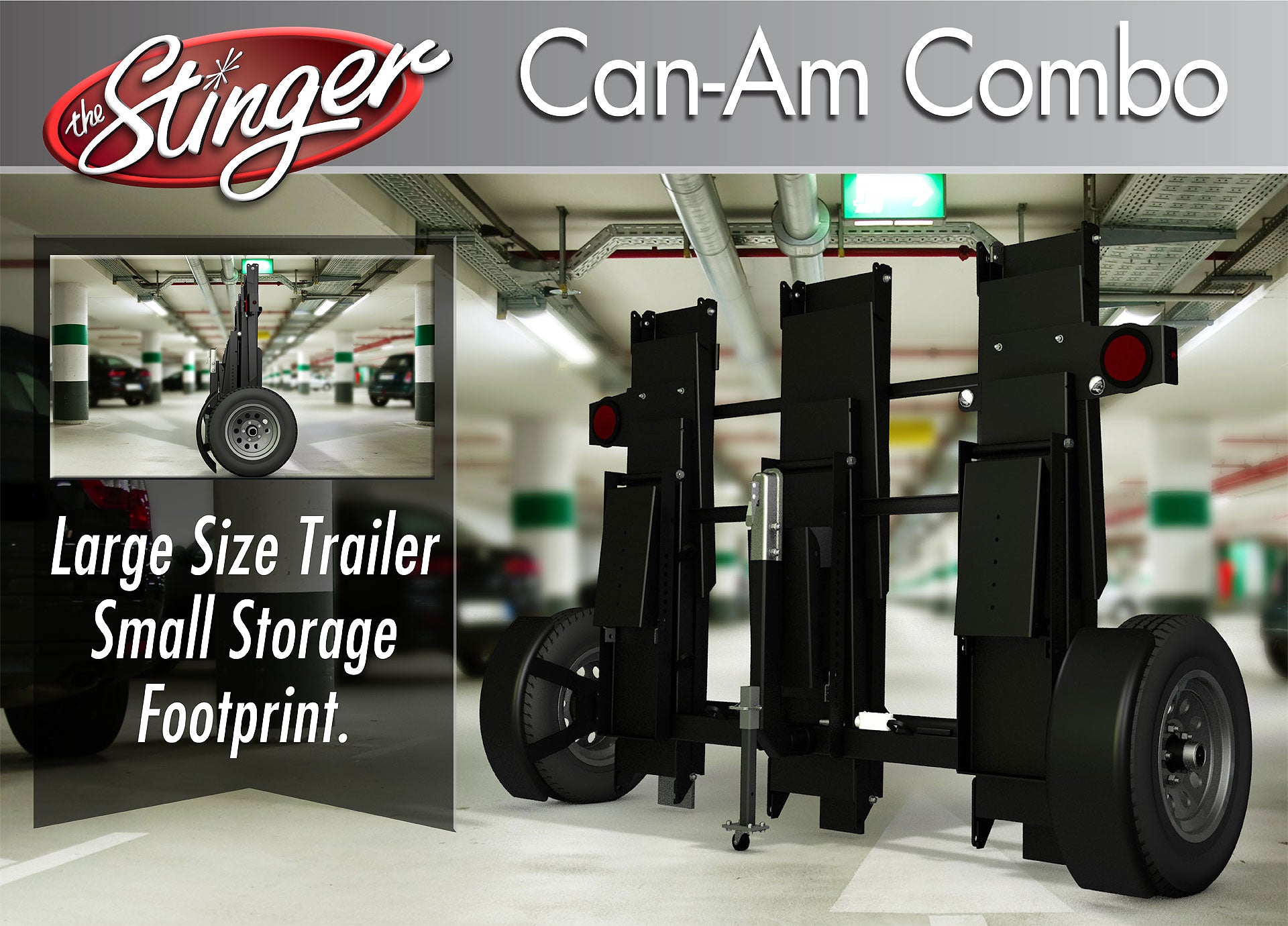 Stinger Motorcycle Trailers knows your space is valuable, which is why our trailers stand upright once folded. The compact design allows you to have a full-size trailer while using minimum storage space. By simply removing the pins, the Stinger folds out to a full-size motorcycle trailer in no time. Folding and unfolding the trailer should be done with two people but loading the trailer can be done with a single person. These trailers ship complete so there is no assembly required, just unfold and go! Stingers have the coolest features on the market incorporated into a folding trailer. Start your Stinger Story today.