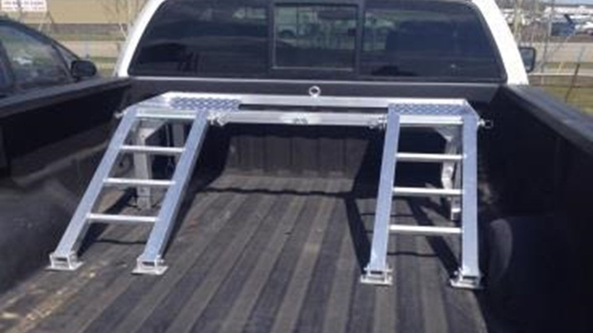 The Marlon ATV Riser is a lightweight all-aluminum riser that fits in the box of any pickup truck. The purpose of the riser is to load your ATV in your short box or to make more room in your long box.