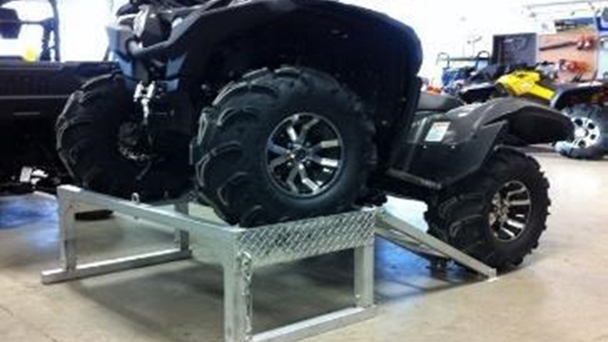 With the ATV Riser, you can also safely secure your loads, save your back window and eliminates damaged tailgates or dented boxes! It has been constructed with removable ramps with swivel footpads, adjustable legs from 15" (measured from the bottom of the ATV Tire) Up to 25" in 2" increments.