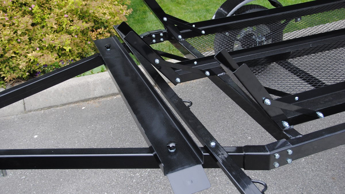- Oversized heavy-duty trailer frame with mesh floor, for novice or experienced users who would like the extra security of extra stepping space when loading and unloading.