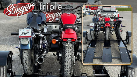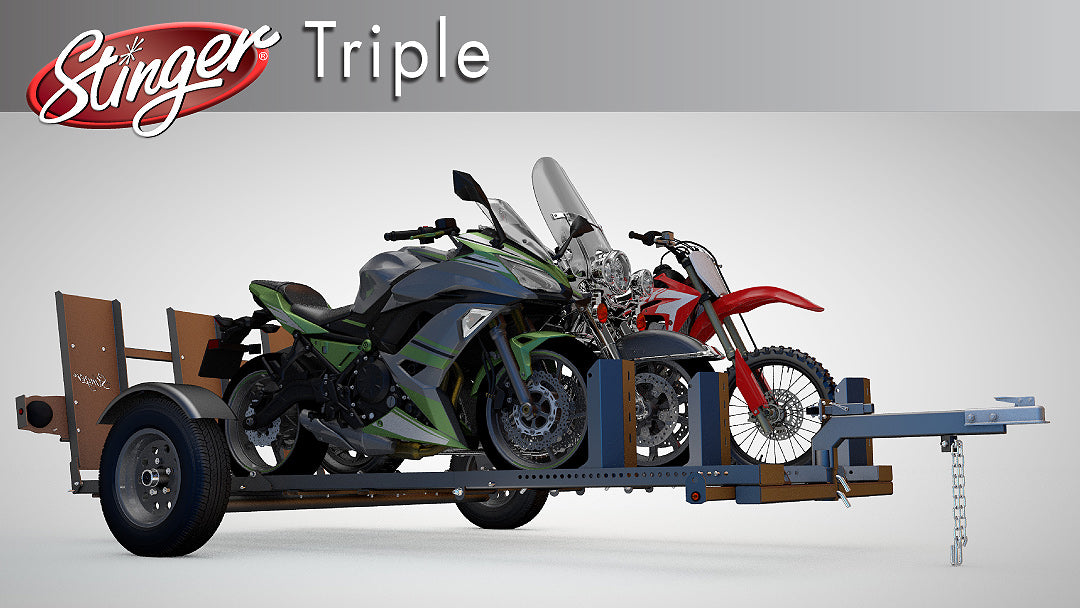 The Stinger Triple effortlessly hauls one, two or three different bikes at a time. From Wheelbase to track width Stinger Trailer Triple design ensures you have plenty of space to load your bikes with ease. All Stinger Trailers are powder coated to ensure a long-lasting finish, feature LED tail lights, and an adjustable chock to suit your bike.