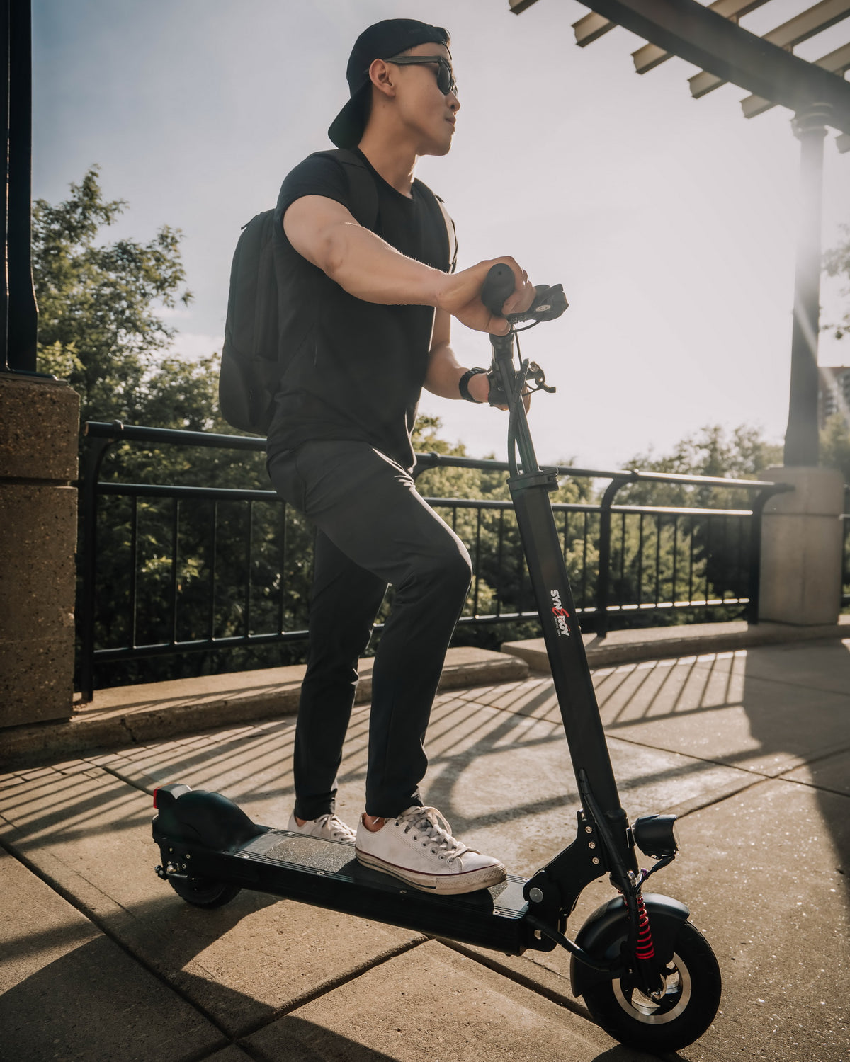 The Synergy Ride 350 is the ultimate urban commuting scooter for overcoming treacherous city streets. The Synergy Ride Urban-Rider e-Scooter is powered by a 350W electric motor, it can reach speeds of 30km/h, and with a range of up to 30-40km (depends on conditions and rider’s bodyweight). The Ride was designed with portability in mind, folding up for compact transport or storage. The body of the scooter is Aluminum, and it offers front suspension as well as hand-actuated front and back disc brakes, plus electric brakes. The also features a digital display of speed and battery.