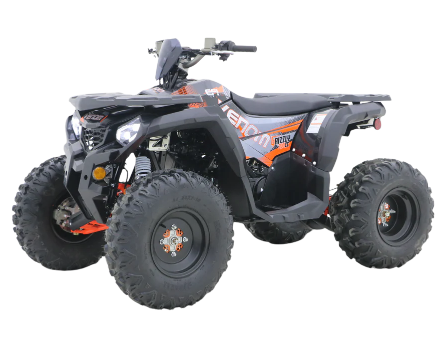 Take your off-road adventures to the next level with the Venom Grizzly 200cc ATV – built tough for riders who demand power, durability, and smooth performance in any terrain. With Electronic Fuel Injection (EFI), automatic CVT transmission, heavy-duty suspension, and aggressive styling, the Grizzly 200 is ready for anything.
