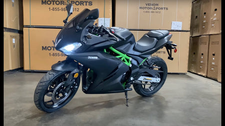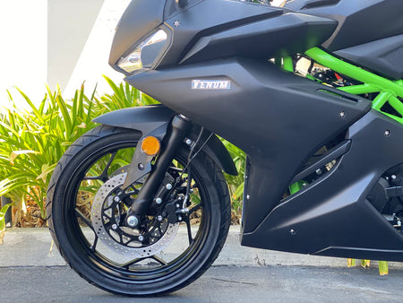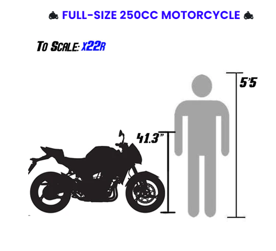 The all-new redesigned Venom X22R MAX 250cc EFI Motorcycle is here! This full-size motorcycle is capable of holding up to 450lbs of weight which makes it a more comfortable ride for 2 adults, without having to compromise performance. The Venom X22R MAX also features a 6-speed 250cc EFI 4-Stroke Engine! Only available in a manual transmission for truly experienced bike riders! The MAX is factory-tuned with a top speed of 120 Km/h and can be driven on all roads Including highways.
