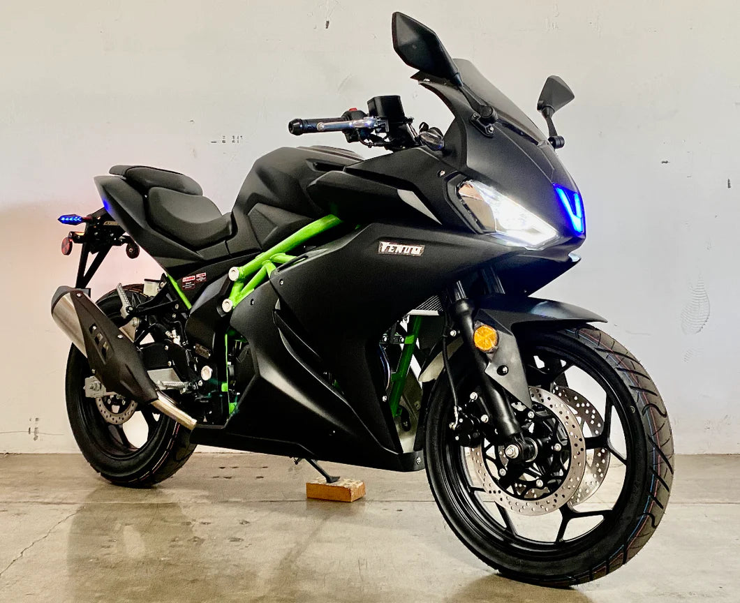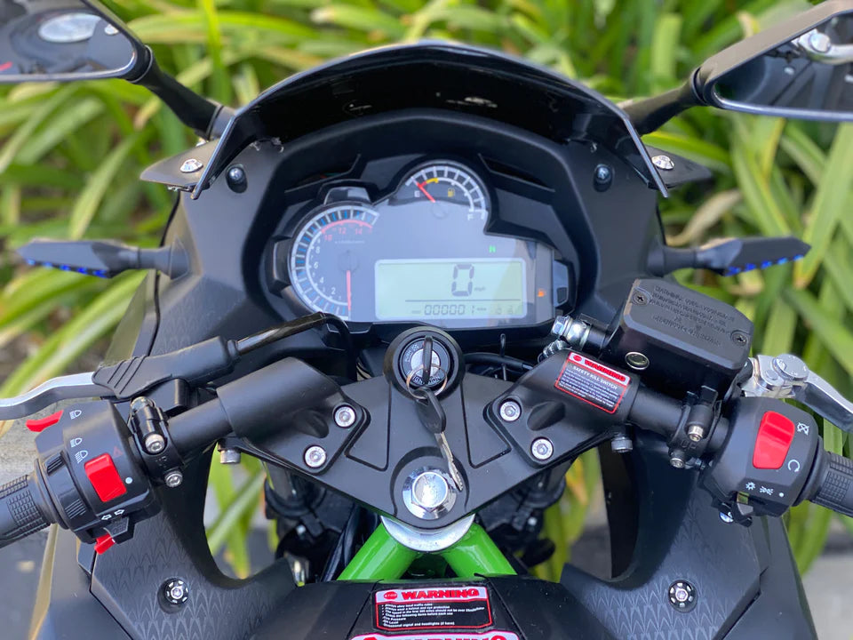 Ninja-styled street motorcycle! High-quality sporty design with a stylish lime green finished frame